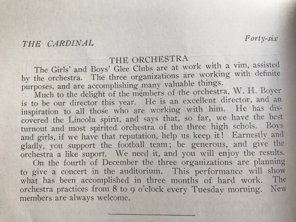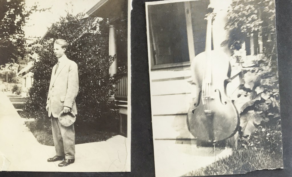Our grandfather, Richard Gill Montgomery, Sr. (Daddy Dick), as Lincoln High student and celloist, outside his home on NW Thurman, ~1912. He was a Cardinal Times editor soon after, see LHS 1914 Cardinal Times images in the slideshow below.