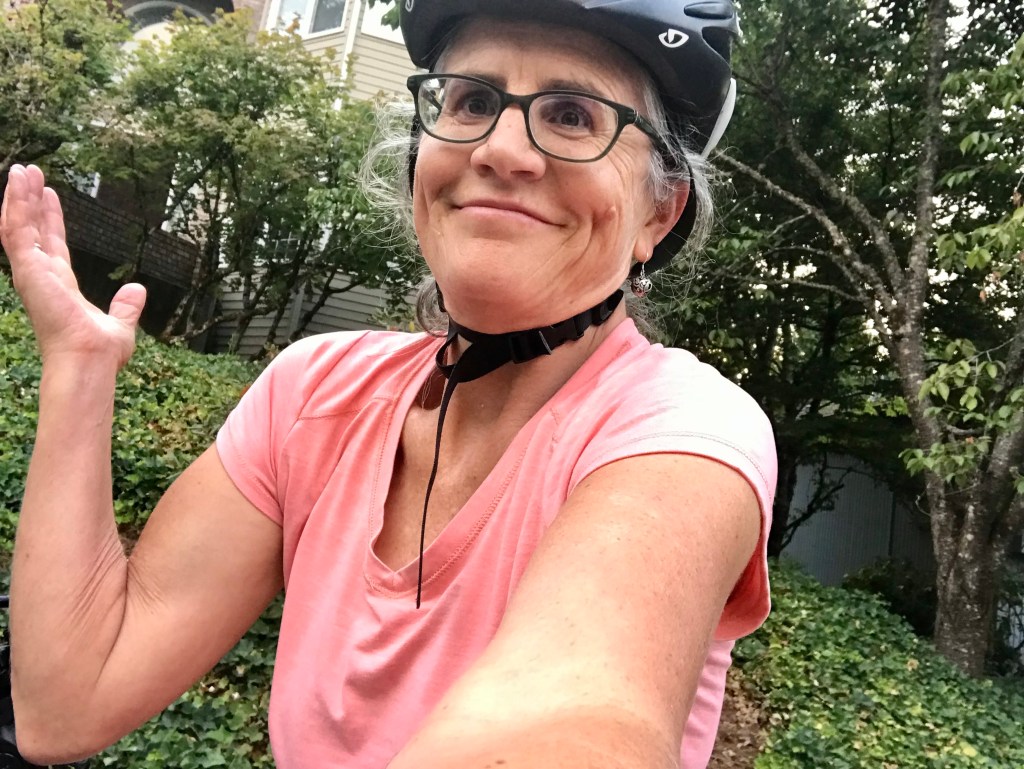 After a rare week of vacation, which included my mom’s Celebration of Life, I was eager to get on my bike for my twice weekly voyage into the office. My thirteen mile ride to work includes a trail along the Willamette, and another through Tryon Creek Park. Other than the hell-of-a-few-blocks of Highway 43 as it dodges into Lake Oswego, narrow lanes with rough grates –no bike lanes in this wealthy community–the other part is also enjoyable as I access Southwest Terwilliger’s bike lane, snaking my way up top to OHSU. Although I did this commute for several years by road bike, I’ve previously blogged about my now two-year relationship with my Giant e+2 bike.