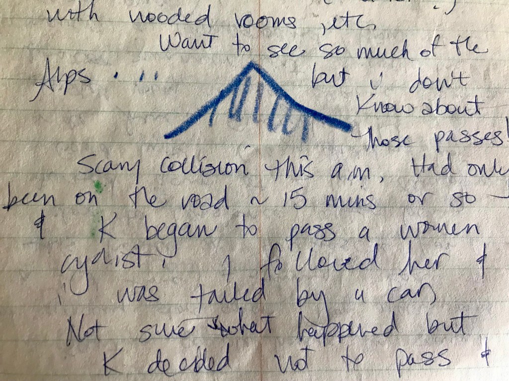 Russ and I have raised two daughters who went off on their own sometimes solo adventures at similar ages (Kenya, Japan, Italy, Costa Rica). When they did, we had cell phone and email though not always with coverage. I admire my parents for supporting this trip Karen and I took, though I also know how different the times felt then. Somehow our parents didn’t worry as much if they didn’t hear from us for a month or two, or maybe they did but didn’t have much choice but to trust us and believe all would be well. They didn’t know that we (sorry safety professional friends but please remember this was before helmets were widely popular everywhere) stopped wearing our helmets after traveling through Holland and Sweden, even mailing them home before later regretting the decision as we tried to figure out how to maneuver roundabouts in Paris. Our parents certainly didn’t know how much two (American) females cycling on Italian roads at that time stood out: cars would go by and men would literally hang out their window. Or about the young Italian police officer who took our passports for much longer than we know was necessary as we stood with our bikes on the road. We made a lot of friends besides Karl and our Italian friends, including our Australian hostel friends in Denmark who toasted our national July 4th holiday. And yet, aside from some flat tires and a few non-serious bike crashes, we returned braver, stronger and unhurt.