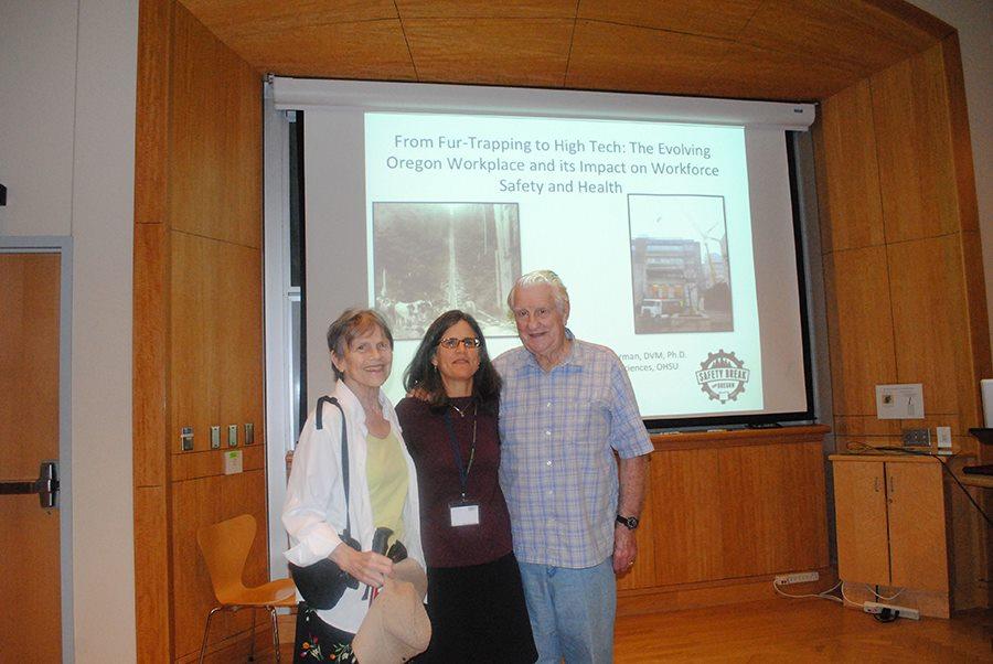 In May 2014, just two months before Dad died, I arranged to give a seminar at work in honor of Oregon Safety Break. I thought it would be fun to use historic photos I recently secured from John Klatt’s Old Oregon website. Even more fun was to have an historian in the crowd: Dad. Mom and Dad sat in the front row, and true to my nature (and Dad’s, I realize now) I called out to him a few times during my talk. “Any corrections from the historian?” I asked. He gave me that beautiful, famous smirk. “No,” he replied. We had so much fun that day. And Dad and Mom were proud. Afterwards I insisted my parents ride the aerial tram down and back up with me. Mom loved it but Dad’s fear of heights prevented him from enjoying the ride. That is, until we got to the bottom where Zidell was still building barges then. A favorite subject during Dad’s long career. I hope I never forget that day.