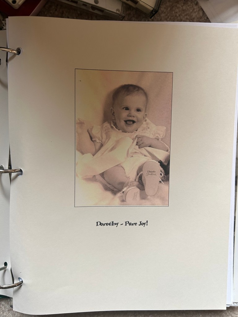 This is in addition to the years of work she put into genealogical research to produce nearly a dozen albums about various members of my dad’s family. Volumes that made my writing of my first book and memoir, My Music Man, much easier. After she died, I found fictional stories saved on her computer; stories she imagined for her beloved grandchildren. I particularly remember her telling my daughters continuing sagas of a character named Mr. Higgenbottom. In each of these stories for grandkids, the key protagonist was one or all of her grandchildren.