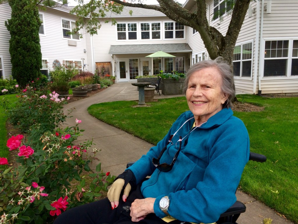 Patty at Tanner Springs, 2018 (Patty broke her hip 6 months earlier. She did walk again without wheelchair.)