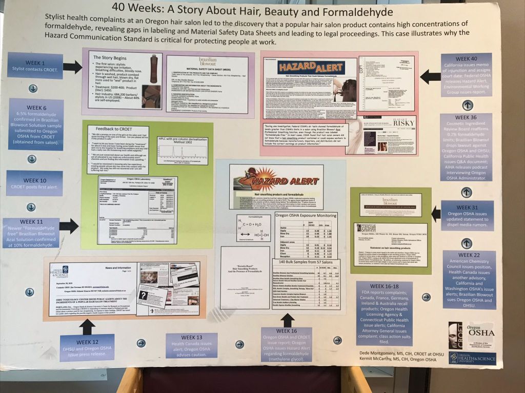 First, catch up on the issue of formaldehyde in hair products. If you don’t know a bit of the history, start here with my prior blog (Hair and formaldehyde, power and health) or check out this poster I presented long ago at the American Industrial Hygiene Association Conference.