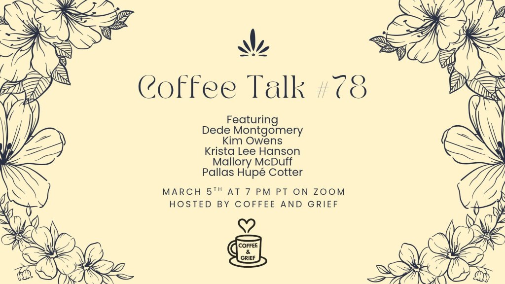 1. Reading from From First Breath to Last at Coffee Talk #78, Thursday, March 5, 7 pm Pacific Time. Register for this free community Zoom events.