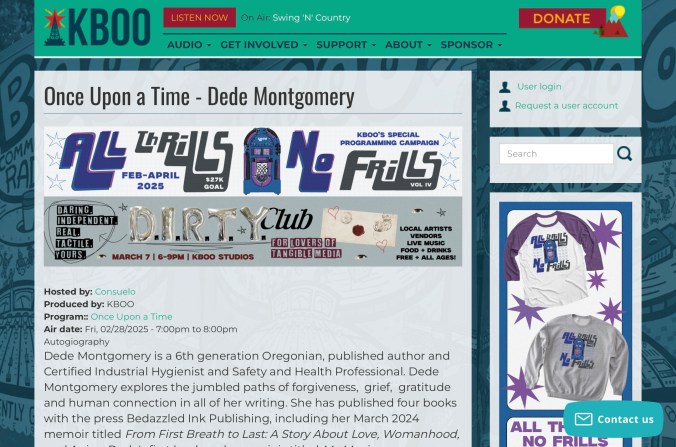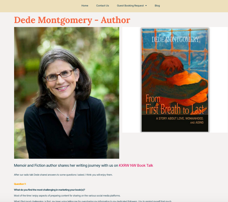 Thanks to KXRW Vancouver and NW Book Talks, as hosted by Patty Grasher for this interview (see post interview Q&A also) about my writing, publishing and books. Listen now.